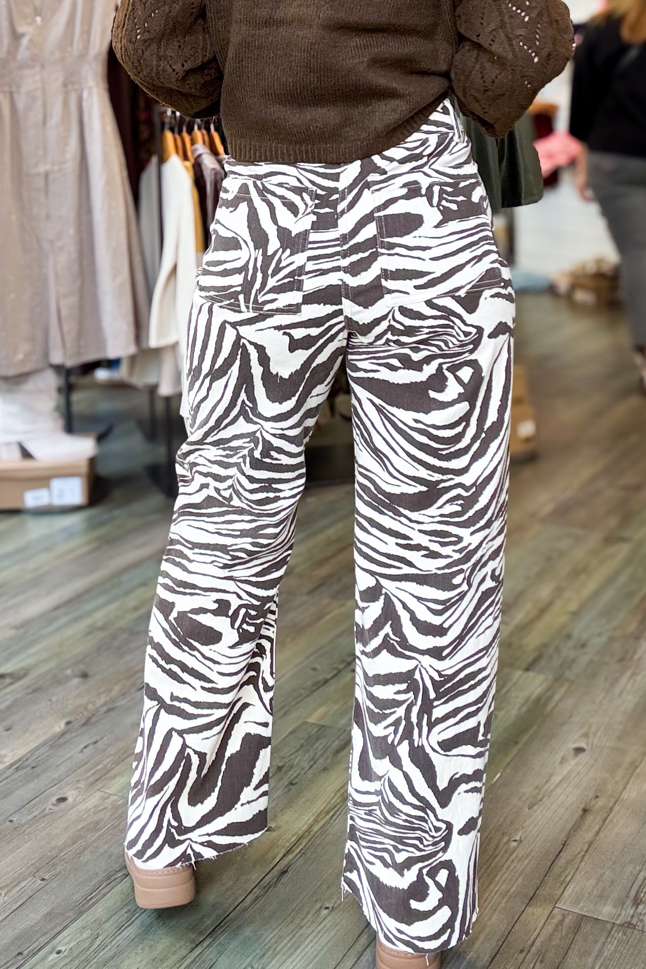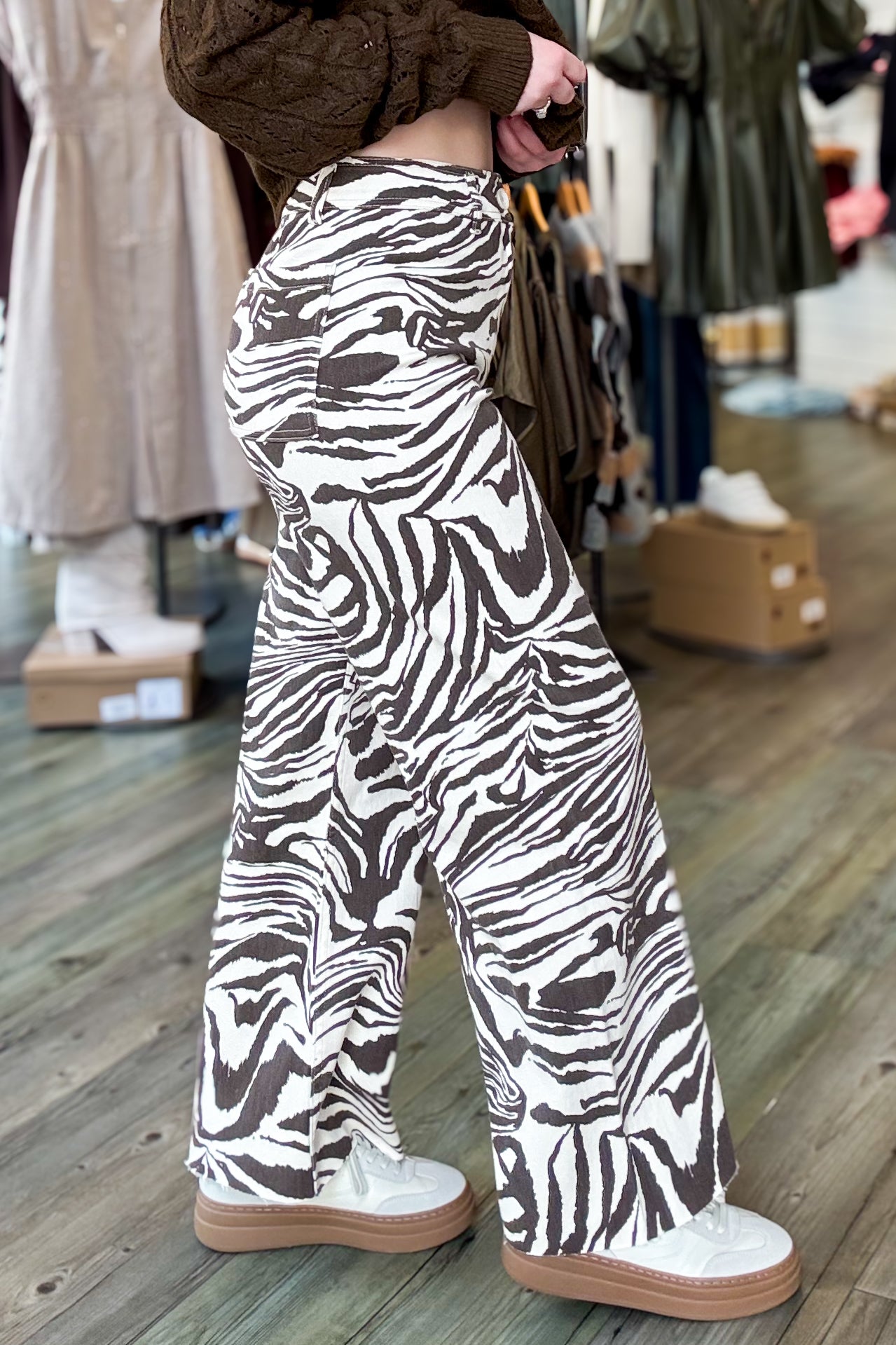 Make a bold statement with these eye-catching Zebra Print Pants! Featuring a striking brown-and-cream striped pattern, they're perfect for adding some wild flair to your everyday wardrobe. Crafted for comfort and style, these pants run true to size, so you can grab your usual fit with confidence. Whether you're dressing up for a night out or keeping it casual, these statement-making bottoms deliver personality and pizzazz to any outfit.